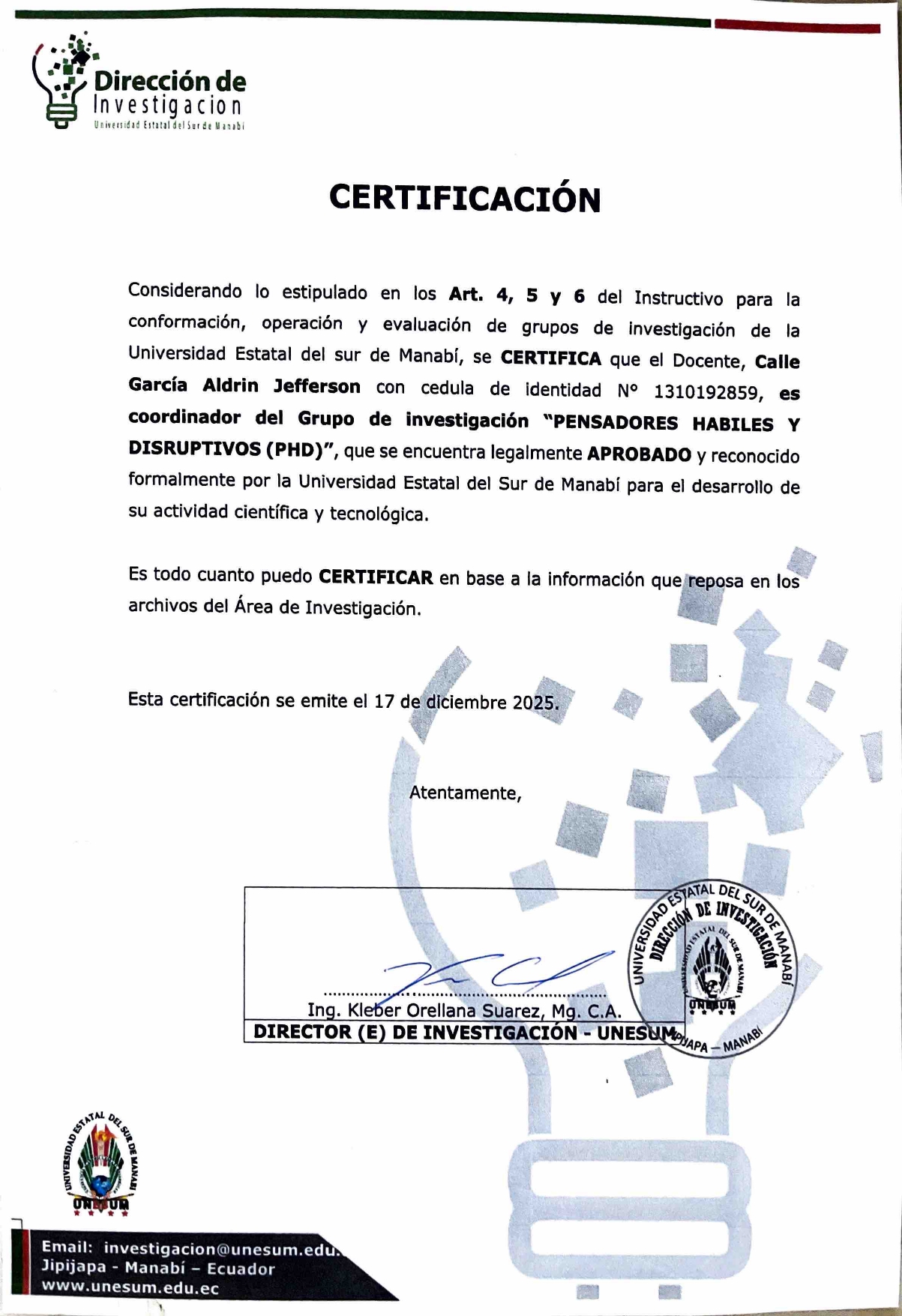 En un escenario global donde la generación y circulación del conocimiento resultan fundamentales para el progreso social y científico, la investigación académica adquiere un papel estratégico en la construcción de soluciones innovadoras y sostenibles. En este marco, la Agrupación Investigación PHD impulsa esta iniciativa editorial con el propósito de consolidar un espacio académico destinado a la difusión de investigaciones originales y al fortalecimiento de la cooperación científica internacional.